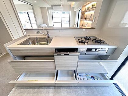 【キッチン】広々としたキッチンで、家族みんなで料理を楽しめます。