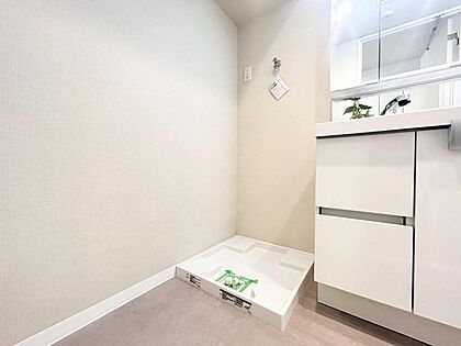 【洗面台】シンプルで清潔感のある洗面所で、毎日の生活が快適に。
