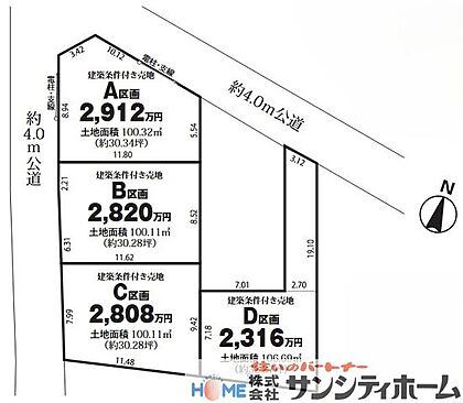 | 土地面積/坪(坪単価) | 100.32m2(実測)/30.4坪(95.80万円) | 代表的な接道 | 公道 西 4m、北 4m ※詳細は備考欄をご確認ください |