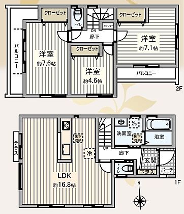 1階、2階の各フロアにトイレがあり、来客時も安心です。1年を通して快適な温水洗浄便座付き。