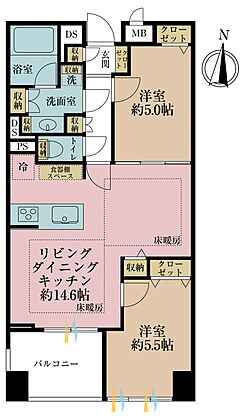 2LDK、専有面積56.47m2、バルコニー面積5.6m2
