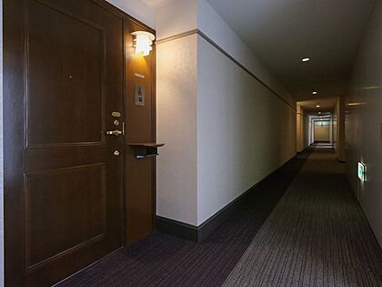 ダークブラウンカラーの扉が印象的な共用部は趣のある空間です。各階にダストステーションがあり、ゴミ出しが便利な嬉しい設備です。