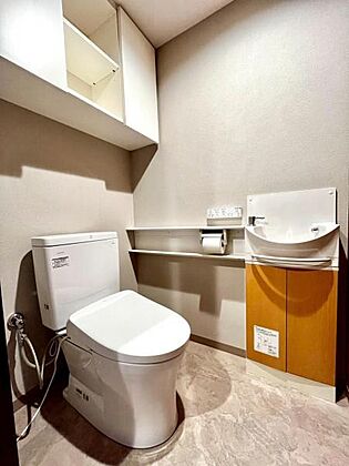 ■シャワートイレ■ 手洗いを別に設置することで、水はねなどの衛生面にも配慮。収納も豊富ですっきり♪
