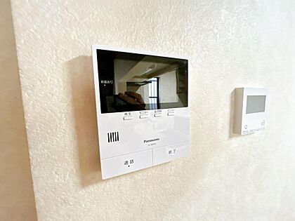 【インターホン】ドアホンはカラーモニター付き。リビングに設置のモニターで玄関にいらしたお客様を確認してからお客様を確認してからお応対できます。留守中のお客様も記録でいるので防犯面でも安心ですね。