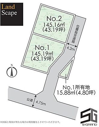 土地面積/坪(坪単価) 161.07m2/48.81坪(24.60万円) 代表的な接道 一方 公道 東 4.2m