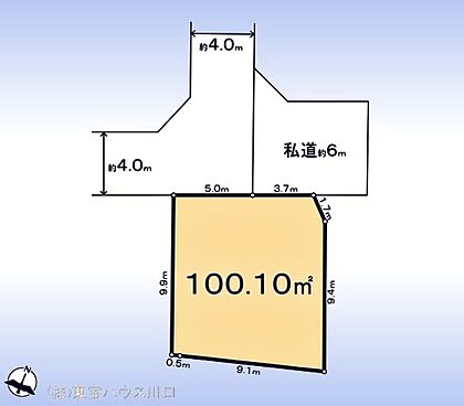 | 土地面積/坪(坪単価) | 100.10m2(実測)/30.33坪(95.60万円) | 代表的な接道 | 一方 私道 北西 6m ※詳細は備考欄をご確認ください |