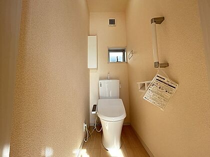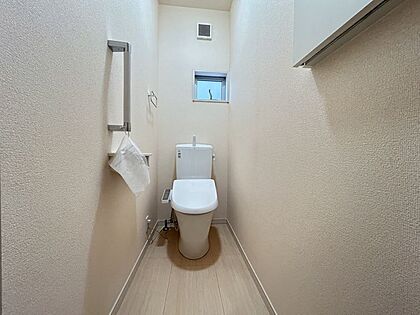 白を基調としたトイレルーム!手すりもあるためご高齢の方でも安心です!