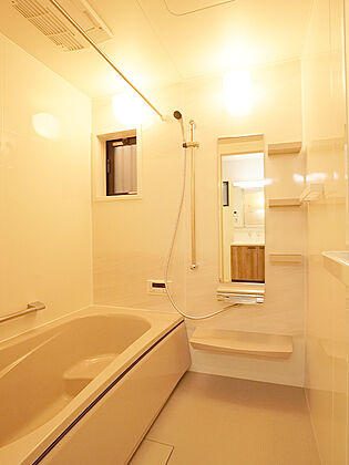 【バスルーム】浴室は、美しい光沢が魅力の「ホーロークリーン浴室パネル」を採用。シンプルなホワイトのほか、落ち着いたカラーや華やかなカラーもご用意しています。(建物価格1630万円、建物面積91m2)