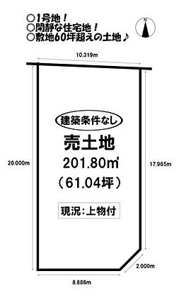 | 土地面積/坪(坪単価) | 201.80m2(実測)/61.15坪(18.30万円) | 代表的な接道 | 公道 北 3.4m ※詳細は備考欄をご確認ください |