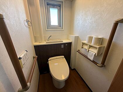 手洗い場と換気窓付きのトイレには、両側に手すりがついております。