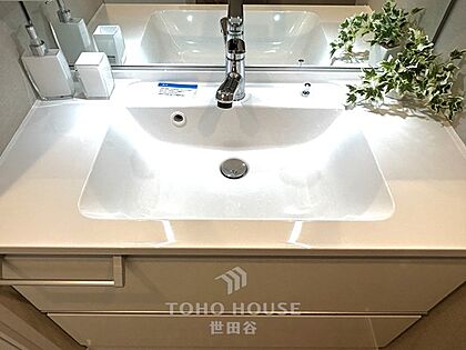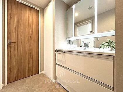 3面鏡にもなる洗面台は収納豊富ですっきり収納できますね。