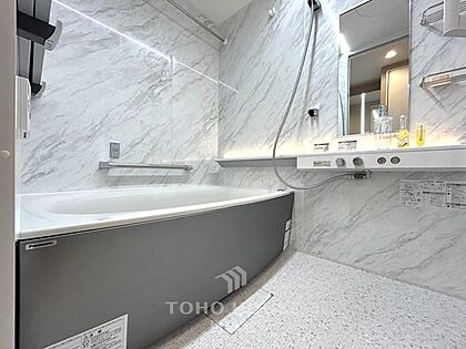 1日の疲れを癒すユニットバス。柔らかな曲線で構成された半身浴も楽しめるバスタブが心地よさをもたらします。