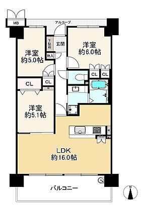 | バルコニー面積 | 12.73m2 | バルコニー向き | 南 |