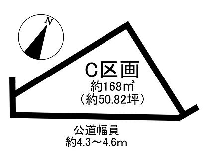 | 土地面積/坪(坪単価) | 168.00m2(実測)/50.91坪(45.10万円) | 代表的な接道 | 公道 南東 4.3m ※詳細は備考欄をご確認ください |