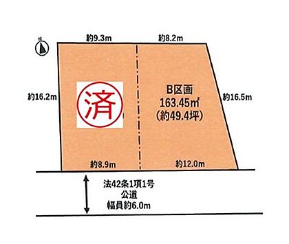 | 土地面積/坪(坪単価) | 163.45m2(登記簿)/49.53坪(45.80万円) | 代表的な接道 | 公道 南 6m ※詳細は備考欄をご確認ください |