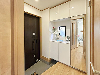 【前面道路】TES式床暖房・食洗器・カップボードが標準設備!エアコンやカーテンレール網戸なども設置済み!