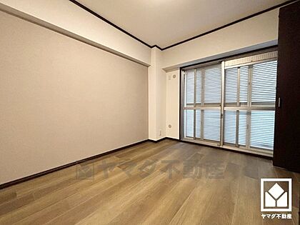 約6帖の南東側洋室です。間取り図では和室となっておりますが、洋室に変更されています。バルコニーにつながるお部屋で、通風・陽当たり良好です。