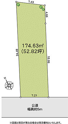| 土地面積/坪(坪単価) | 174.63m2(登記簿)/52.92坪(116.80万円) | 代表的な接道 | 一方 公道 南西 5m ※詳細は備考欄をご確認ください |