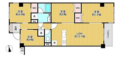 | 設備・サービス | ●オール電化 ●追焚機能 ●浴室乾燥機 ●ウォークインクローゼット |