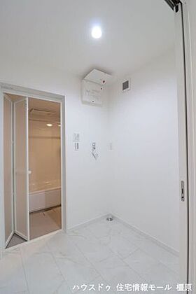 約2帖のランドリールームは脱衣所としても利用できます。ご家族が入浴中でも洗面が使えて便利です