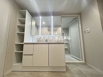 収納スペースもバッチリなこちらの洗面台。忙しい朝の時間にお役立ち!化粧品やヘアケア用品など細かな物も収納しておけるから「あれ?アレどこだっけ?」がありません。