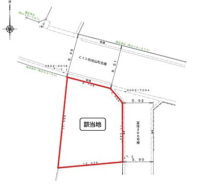 | 土地面積/坪(坪単価) | 177.75m2(登記簿)/53.86坪(31.20万円) | 代表的な接道 | 公道 北 8.6m、東 5.9m ※詳細は備考欄をご確認ください |