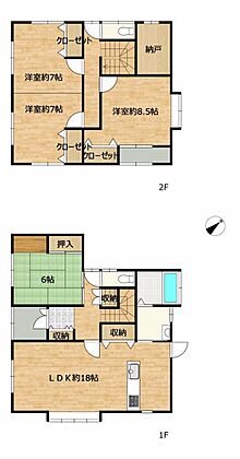 【リフォーム中】2階8.5帖の洋室には納戸もあります。約3畳ほどの広さなので様々な物が収納可能です。