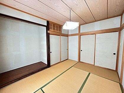 【リフォーム中】1階西側の和室。東側から撮影しました。天井、壁のクロスの貼り替えを行い、照明器具は新品に交換します。