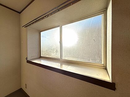 【リフォーム前写真】2階6帖洋室の出窓の写真です。西向きで明るい光が差し込みます。こちらにもインテリアを飾ったり、ちょっとしたカウンターとして使用できますね。