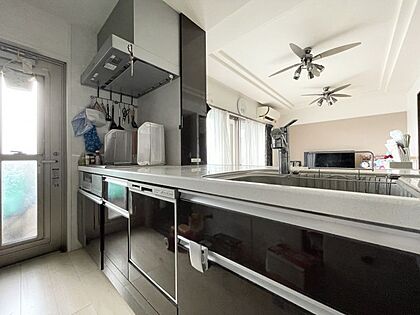 リビングを見渡せる対面キッチン!勝手口付きでゴミ出しやバルコニーへの出入りも◎