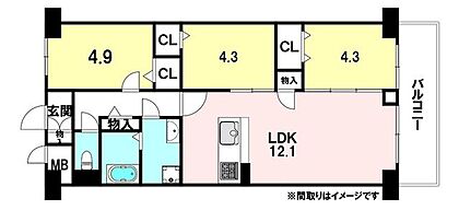 3LDK、専有面積61.60m2、バルコニー6.96m2、南西向きバルコニー♪