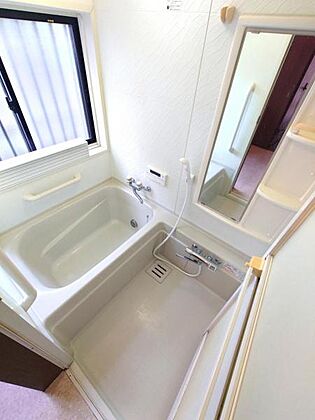 【浴室】窓付きで換気もできる明るい浴室。