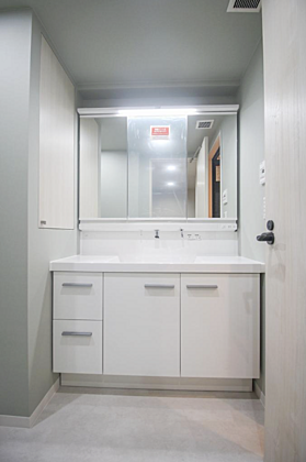 ■ 洗面化粧台 ■ 便利な三面鏡つきで、収納たっぷりの洗面室です。水まわりが綺麗にできるのはありがたいですね!