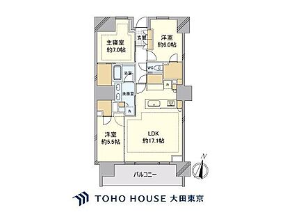 3LDK、専有面積85.52m2、バルコニー面積11.97m2