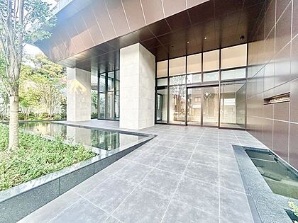 水と緑に癒やされ心解き放たれる日常へ。ステータスを感じさせる重厚感のあるエントランス。