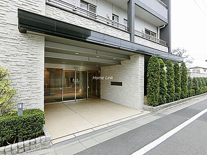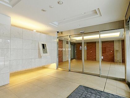 エントランスアプローチは緑に囲まれており、自動ドアを入ると大理石貼りの高級感ある佇まいのエントランス。