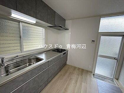 キッチン:キッチンの横には勝手口があります。窓から心地よい風と自然光でキッチンでの作業がはかどりそうですね。勝手口外にはゴミ箱を置くスペースもあるので、家の中をスッキリと保てそうです。