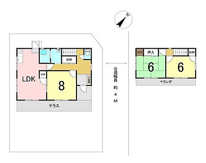 【北西側 前面道路】幅員約4mの前面道路です。普通車が1台通れる幅となります。大型車の通行が少ないので、振動や騒音が抑えられます。
