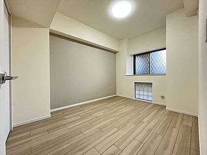 6帖洋室:壁の一部にガラスブロックを配し、柔らかな自然光を取り込みます。機能的で魅力的な空間です。(2025年11月14日撮影)