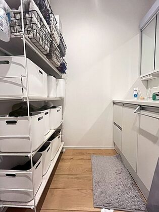 1階の納戸はファミリークローゼットに。玄関から近いので、コートや重くて汚れやすいゴルフバックやベビーカーをしまっても、まだまだ収納に余裕があります。