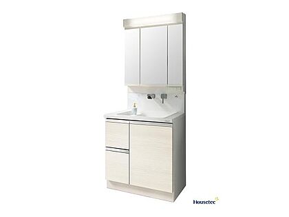 【同仕様写真】新品洗面化粧台は、幅の広い洗面ボウルとシャワータイプの水栓が付いています。日々のお手入れもラクラクできちゃいます。