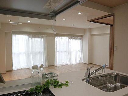 広々とした対面式キッチンスペース。食洗機と浄水器が付き、収納力もあるキッチンはお料理が捗ります。