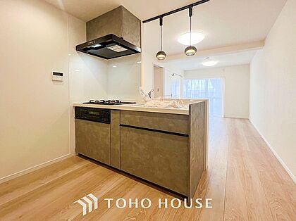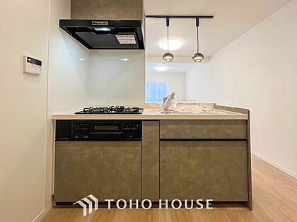 お手入れのしやすいすっきりしたシステムキッチンを採用しました。