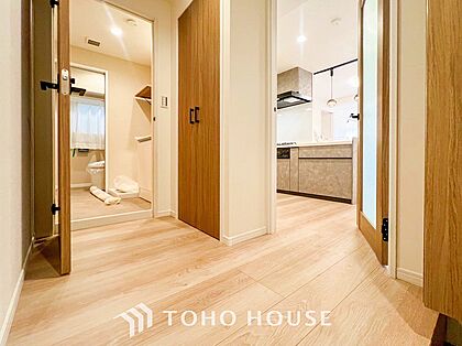上質感漂う廊下。居住者の帰り、訪れる方を優しく迎え安らぎに満ちた生活空間を予感させます。