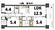 リビング12.9帖。大き目のダイニングテーブル。家族でくつろげるソファーセットが置けるくらいの広さがございます。