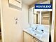 【新調】三面鏡タイプのシャンプードレッサー。鏡の裏が収納となっています。
