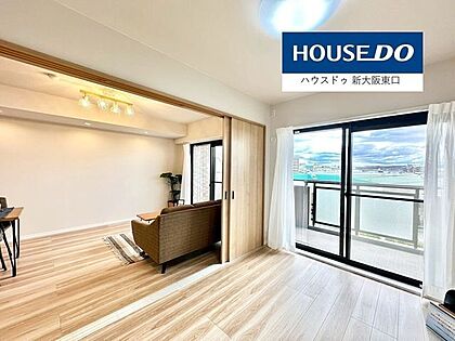 洋室5.4帖からの眺望。フローリングの色合いと新設された建具の色合いがとてもマッチしていますね。
