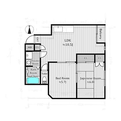 | 間取り | 2LDK | 専有面積 | 43.74m2(壁芯) |