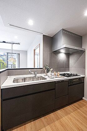 【キッチン】食器洗乾燥機やディスポーザー、浄水器など機能的な設備が備わっています。日々の家事負担が軽減されそうです。