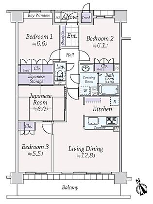 | 間取り | 4LDK | 専有面積 | 85.79m2(壁芯) |